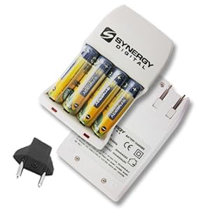 This battery and battery charger set works for all devices that use AA batteries such as digital cameras, CD and MP3 players, and handheld video games. It includes 4 high-capacity 2800-mAh rated batteries at 1.25 volts. Ni-MH batteries are lightweight and can be charged or discharged at any time without developing so called "memory effect", so they never lose their ability to hold a full charge. Another plus: they are environment friendly.