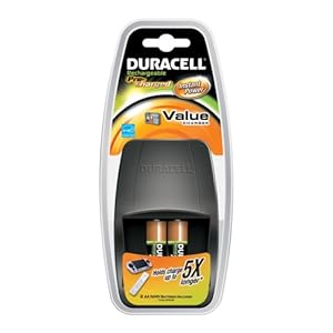 Duracell Value Charger With 2AA Pre Charged Rechargeable NiMH Batteries, CEF14X2