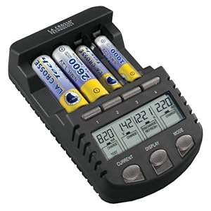 Special Features:• LCD display capacity level after completion • Simultaneously charges AA ; AAA, both NiMH or NiCd rechargeables • Select different currents: charge, discharge, refresh, test • Automatic trickle charge for maximum battery life • Detects dead batteries ; overheat protection