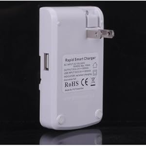 - Compact,Portable ; fashionable design / 5 in 1 universal Charger / auto detection of polarity / Autometically Stop when battery is full(Red when Chaging,blue when full).
